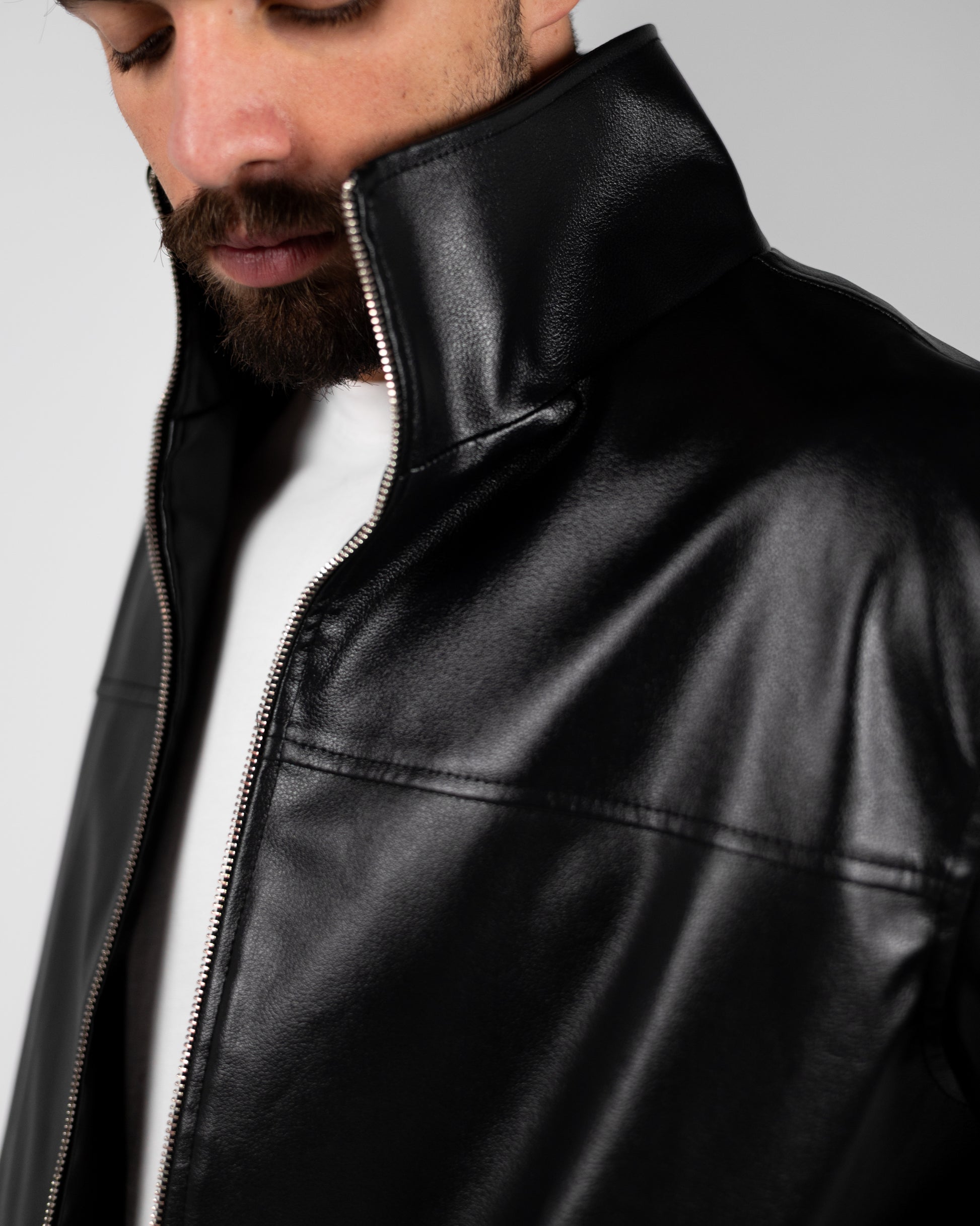 Black Leather Jacket A timeless wardrobe essential crafted from genuine leather, this jacket combines sophisticated style with practical functionality. The streamlined silhouette features a front zipper closure and strategically placed pockets for convenient storage. Designed to provide warmth without bulk, the supple leather develops character over time while maintaining its structural integrity. Perfect for layering across seasons, this piece transitions effortlessly from casual to refined settings. The expert construction ensures durability and longevity, making it an investment piece that anchors any collection.