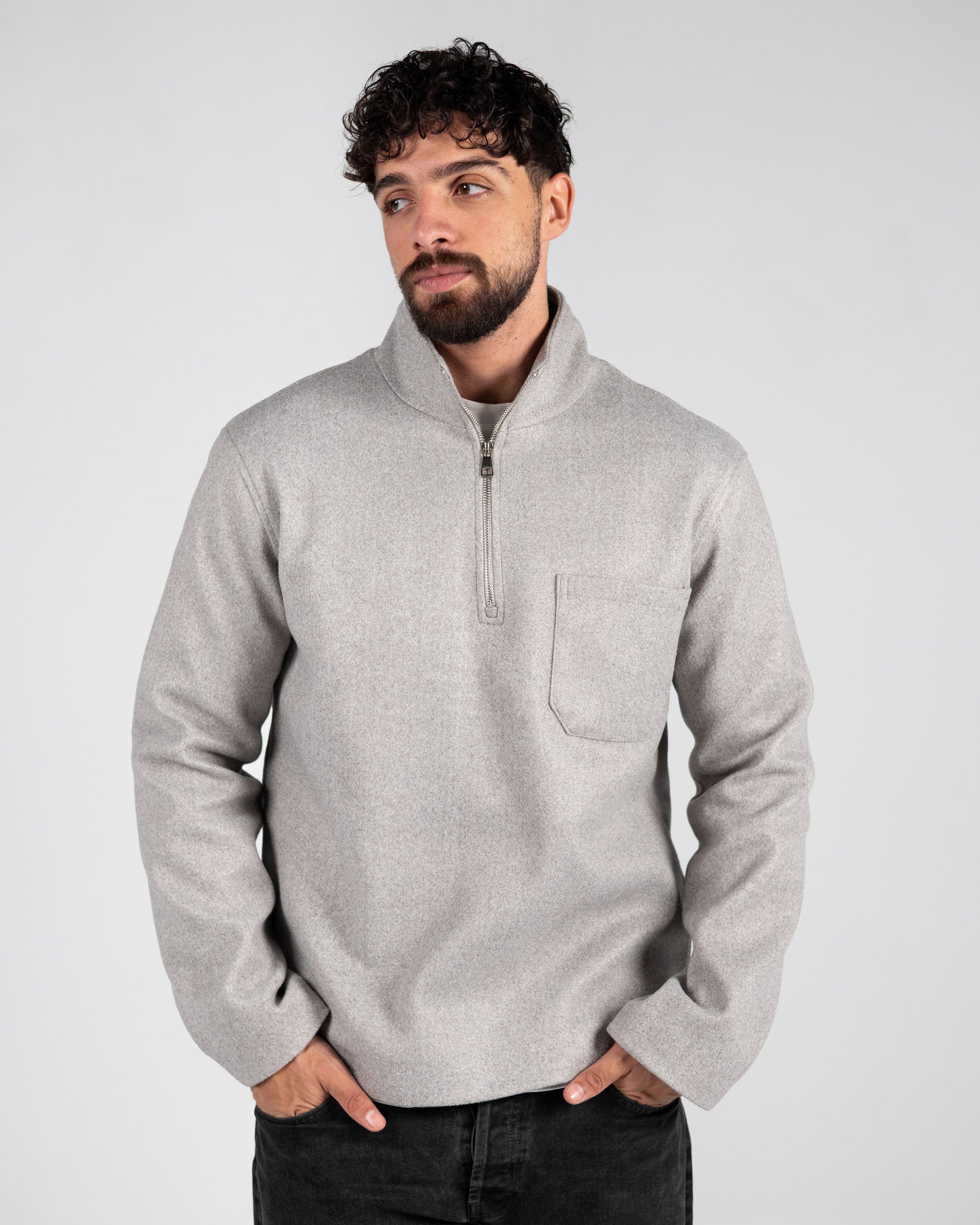 Crafted from premium wool, this quarter zipper pullover delivers exceptional warmth for demanding winter conditions. The grey hue offers sophisticated versatility, pairing effortlessly with your existing wardrobe. The quarter zip design provides convenient temperature regulation and refined styling options. Built with superior insulation properties, this pullover maintains its shape and performance season after season, making it an essential investment for those who prioritize both comfort and understated elegance.